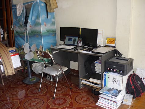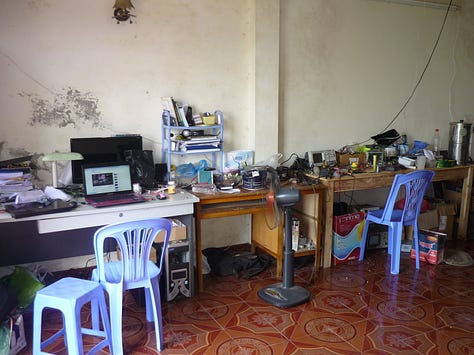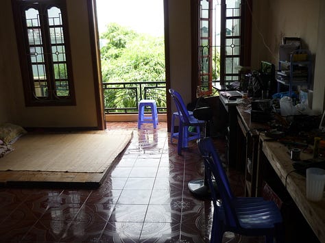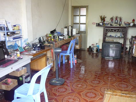 - Sống, ăn, làm việc chung trên 1 căn phòng vừa là “bàn thờ của chủ nhà” , chỗ để đồ thừa, bàn làm việc, nghiên cứu, test - thử nghiệm, nơi ngủ, nấu ăn, hiên nhà ngắm hàng tre